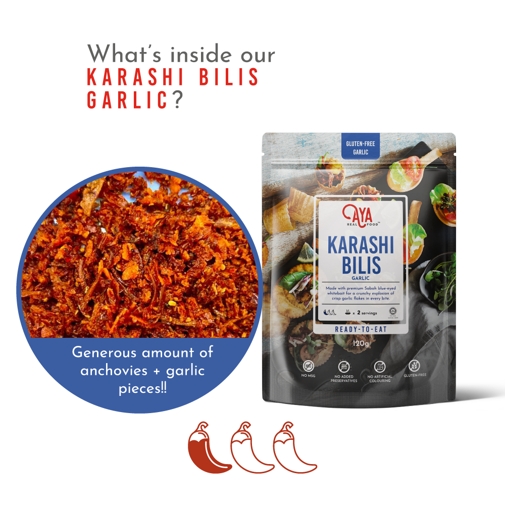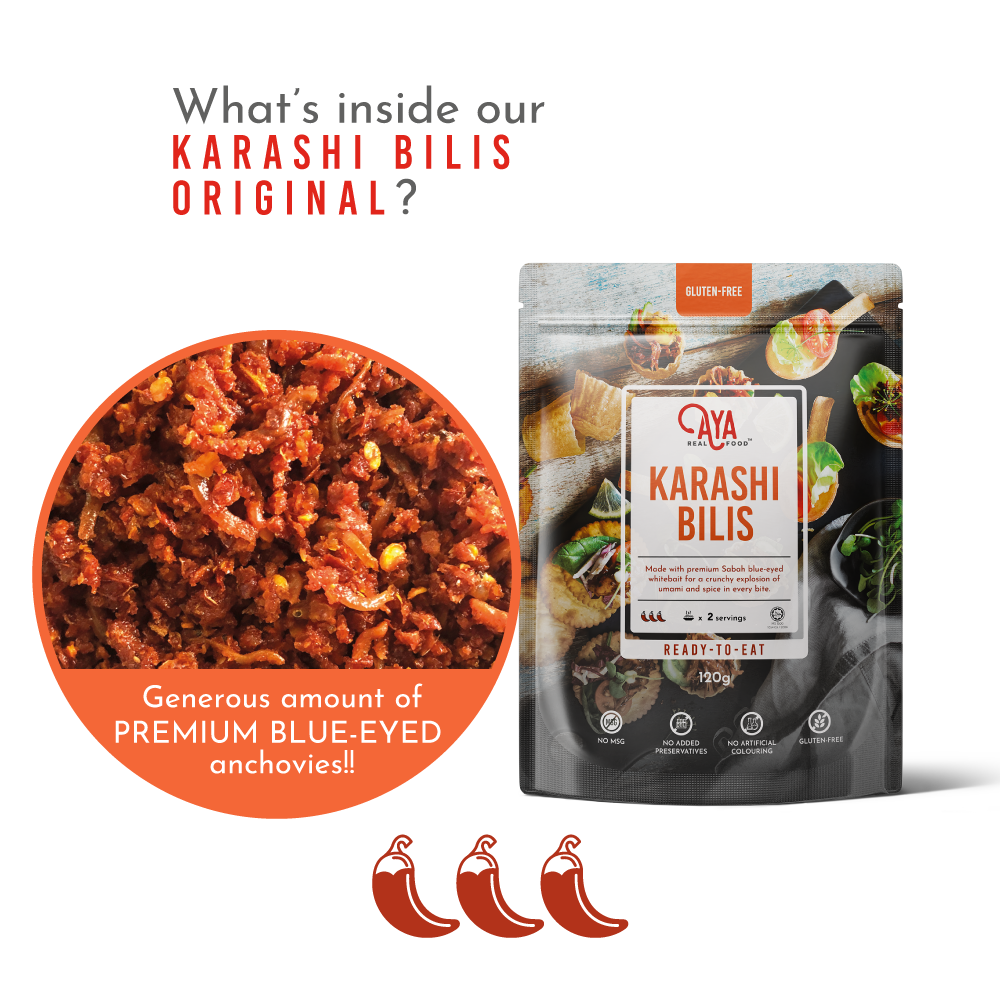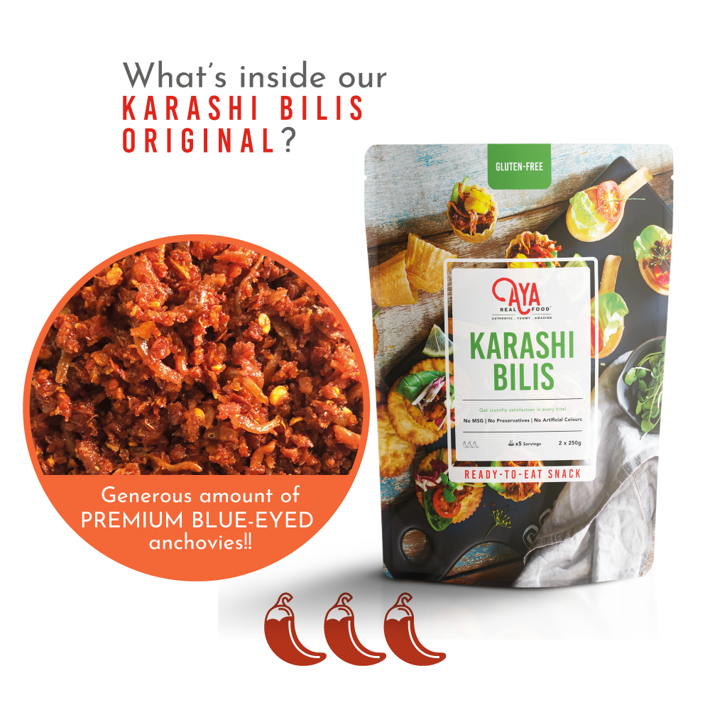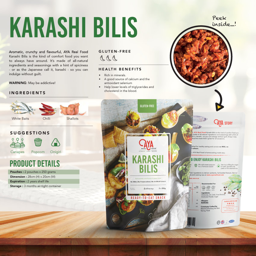 Aromatic, crunchy and flavourful, AYA Real Food Crispy Bilis is the kind of comfort food you want to always have around. It’s made of all-natural ingredients and seasonings so you can indulge without guilt. Enjoy it on its own, as a canape or salad garnish, sprinkle over pasta or onto hot steamed rice…any way you like! Warning: May be addictive.